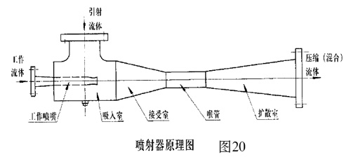 利用流體來(lái)傳遞能量和質(zhì)量,輸送或壓縮流體的這種裝置叫做噴射器。在這種裝置里,不同壓力的兩股流體相互混合并發(fā)生能量交換,以形成一股居中壓力的混合流體,溫合流體有的是氣相,有的是液相,有的是氣相、液相和固相的混合物。進(jìn)入裝置以前,壓力較高的介質(zhì)稱(chēng)為工作流體,并以很高的速度從噴嘴噴出進(jìn)入噴射器的接受室,并把在噴射器前壓力較低的介質(zhì)吸走,被吸走的流體稱(chēng)為引射流體。通常在噴射器里最初是發(fā)生工作流體的勢(shì)能或熱能轉(zhuǎn)變?yōu)閯?dòng)能,工作流體的動(dòng)能傳遞給引射流體。
