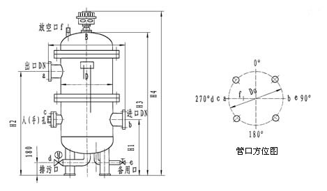 注:①本過濾器的連接法蘭,一般按HG20593-97PN 1.0MPa設(shè)計(jì)制造,用戶如需其它標(biāo)準(zhǔn)的連接法蘭或相關(guān)尺寸及排污閥方向等需變更時(shí),請(qǐng)?jiān)谟嗀洉r(shí)說明。