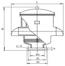 | 三、阻火呼吸閥 1.產(chǎn)品用途 阻火呼吸閥是用來降低常壓貯罐內(nèi)揮發(fā)性液體的蒸發(fā)損耗,保護(hù)貯罐免受超壓或其它破壞的安全設(shè)施。通常阻火呼吸閥安裝在儲(chǔ)存閃點(diǎn)低于28℃的甲類油品或化工原料和閃點(diǎn)低于60℃的乙類油品或化工原料。如汽油、甲苯、煤油、輕柴油、原油等油品及化工物料的儲(chǔ)罐頂上。產(chǎn)品的技術(shù)性能,試驗(yàn)方法符合SY/T0511-1996《石油儲(chǔ)罐呼吸閥》標(biāo)準(zhǔn)。 2.結(jié)構(gòu)示意圖及尺寸表(全天候呼吸閥見圖45表52,阻火呼吸閥見圖46表53) |